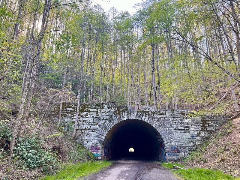 Backstory: Around the time of World War II, Swain County gave a majority of its land to the federal government to build the Fontana Lake (and dam) and Great Smoky Mountains National Park. Residents were forced to move and the road that once connected the tunnel was buried. The federal government promised to rebuild the road at the time, but over time, it proved too expensive and posed environmental challenges so the “Road to Nowhere” remained. (Hey, history buffs — go deeper here.)